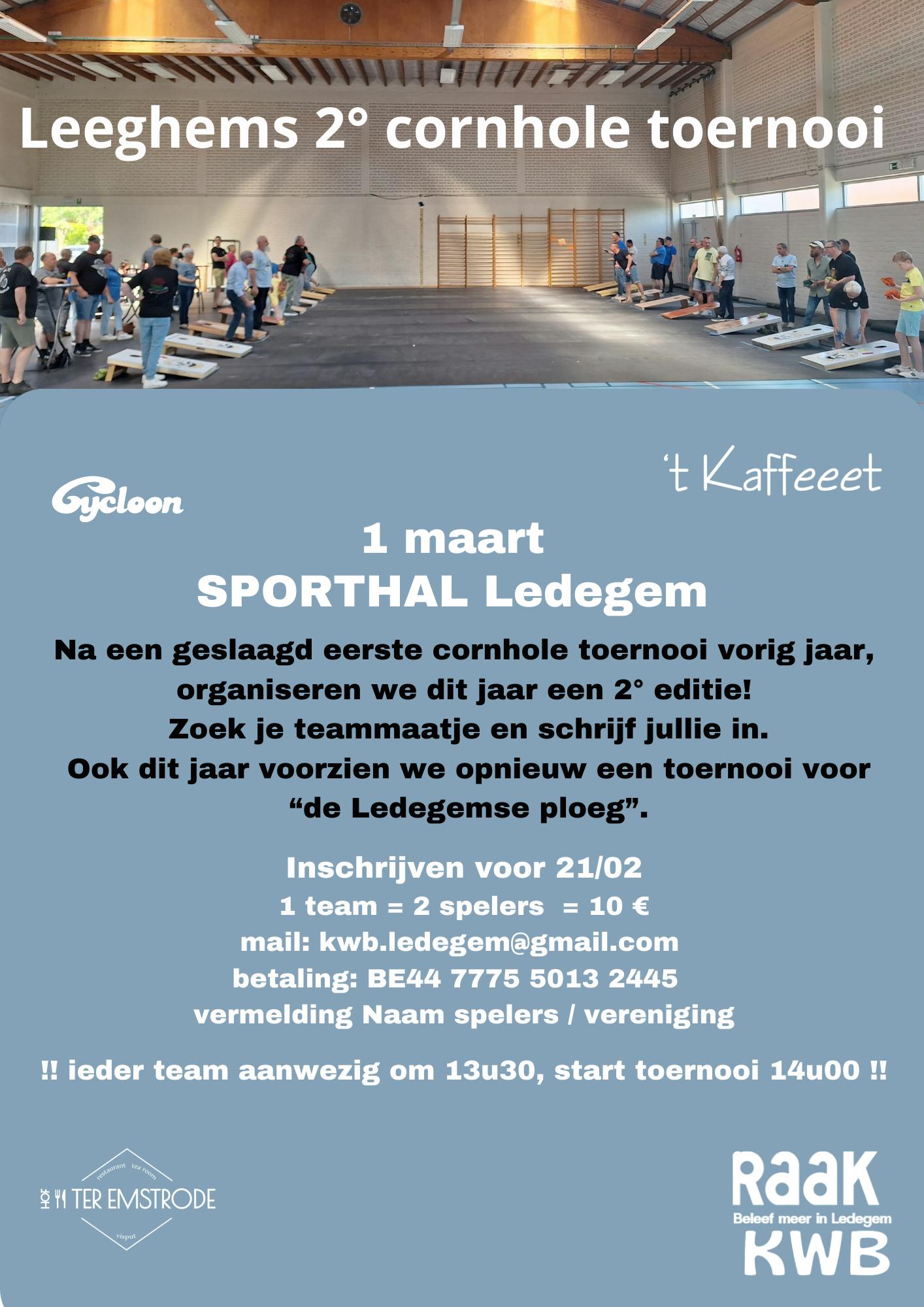 Na een geslaagd eerste cornhole toernooi vorig jaar, organiseren we dit jaar een 2° editie!