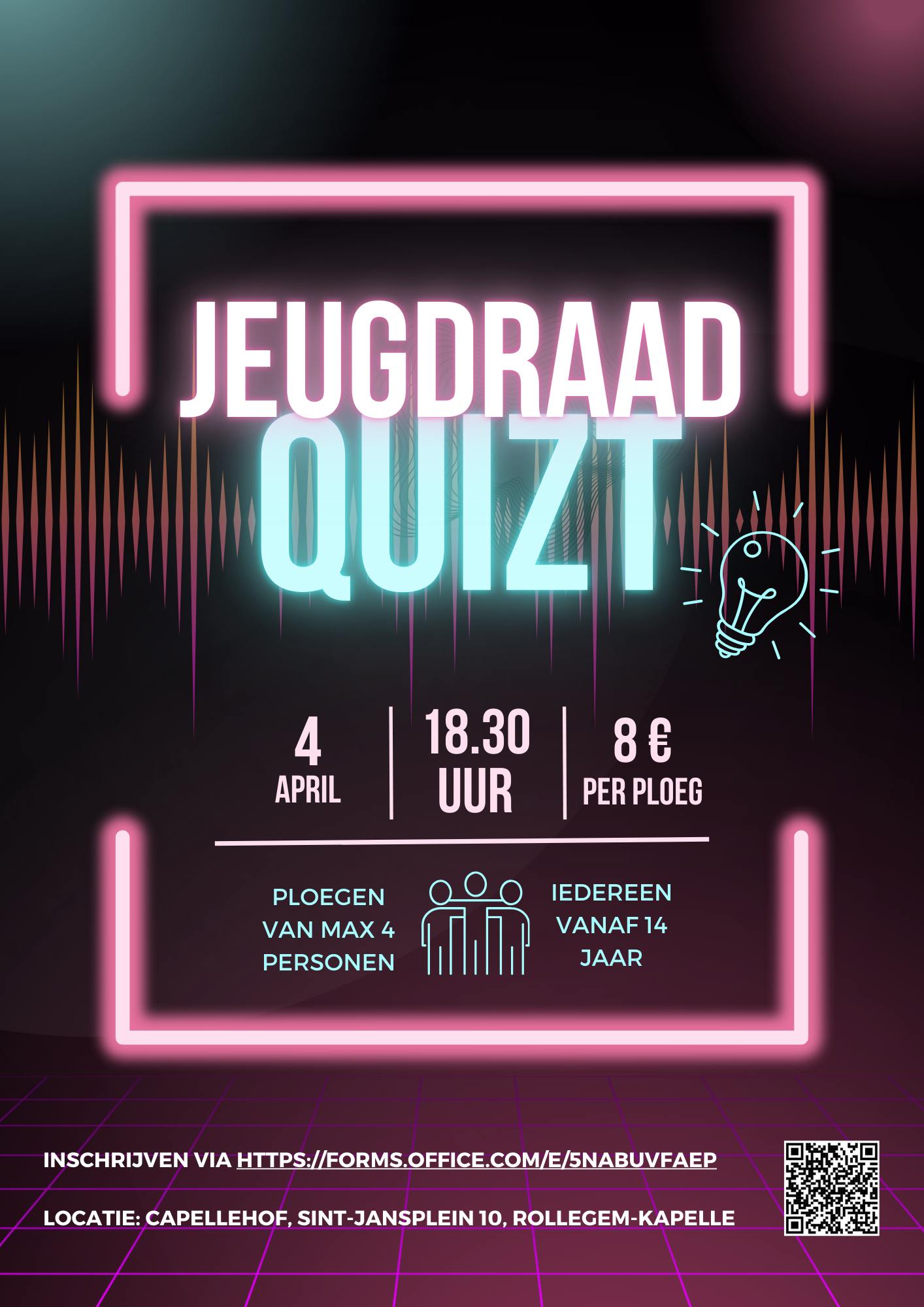 Verzamel maar snel je slimste vrienden en familie, want het aantal ploegen is beperkt! Iedereen vanaf 14 jaar mag deelnemen aan onze gezellige quiz!