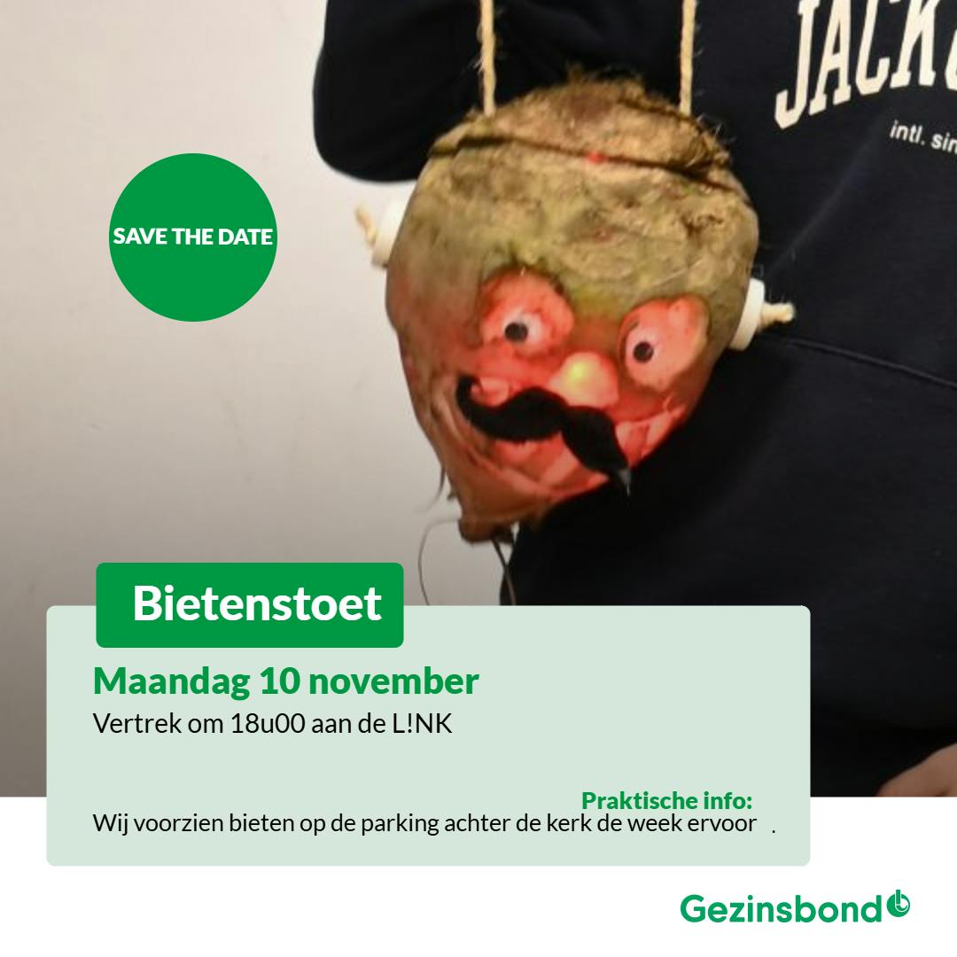 Vanaf 2 november staat er een aanhangwagen met bieten op de parking achter de kerk. Je mag er gerust een biet meenemen en laat je creativiteit de vrije loop! Als je voor vertrek een foto van je versierde biet binnenbrengt zal de jury de winnaars uitkiezen tijdens de bietenstoet.